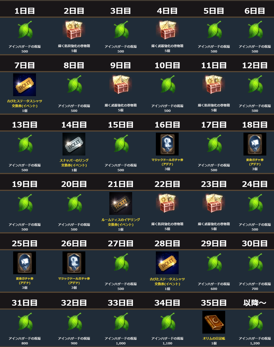 毎日受け取ることができる「出席報酬」の内容が更新されましたのでお知らせします。