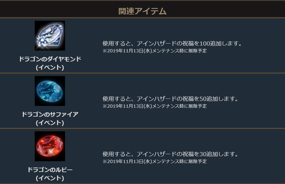 また、同時開催されるイベントクエストやイベント製作を通じてアインハザードの祝福を追加するためのアイテムを獲得することも可能です。