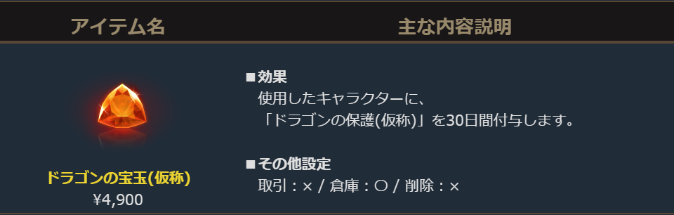 「ドラゴンの宝玉(仮称)」を使用すると、使用したキャラクターに専用バフ「ドラゴンの保護(仮称)」が付与されます。