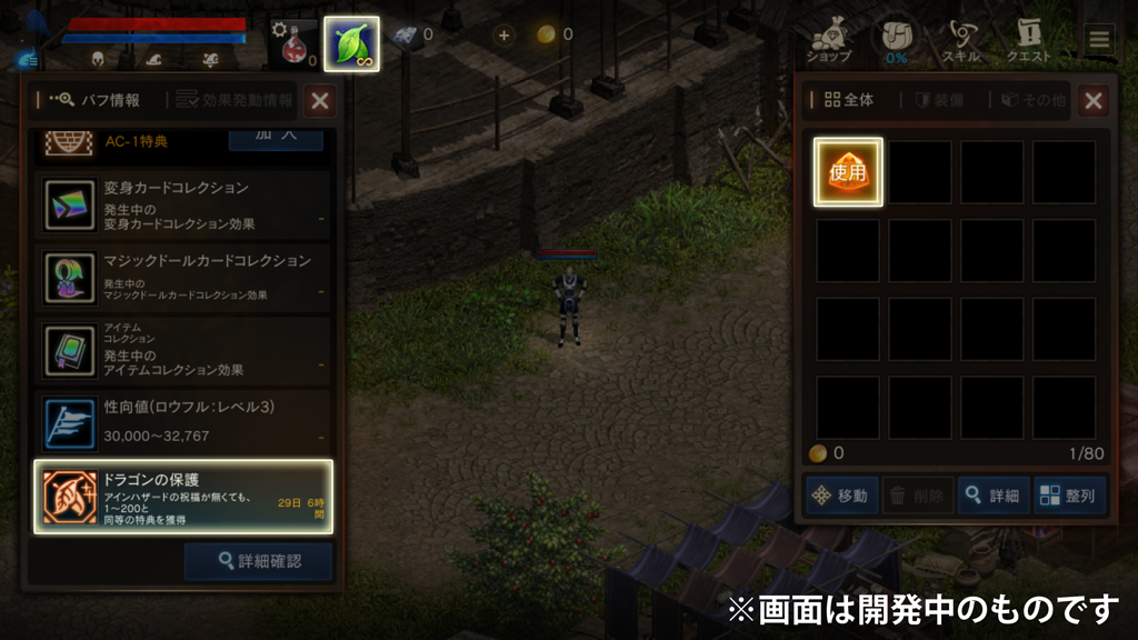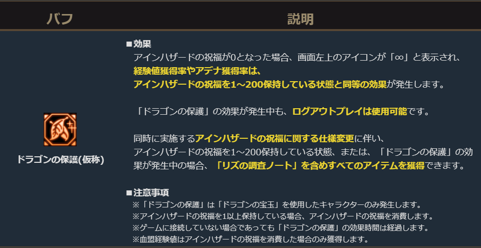 ※ゲームに接続していない場合であっても「ドラゴンの保護」の効果時間は経過します。