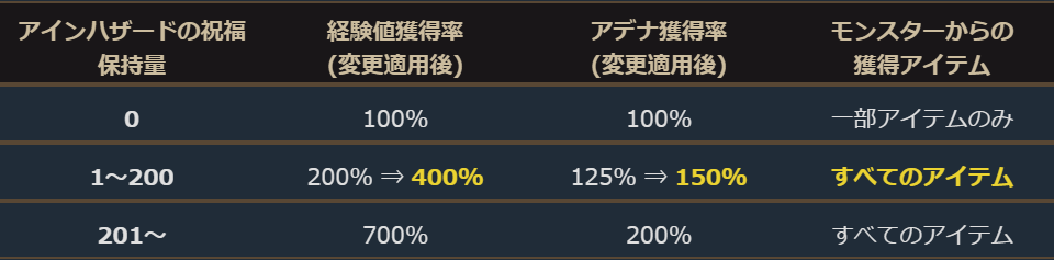 ※血盟経験値はアインハザードの祝福を消費した場合のみ獲得します。