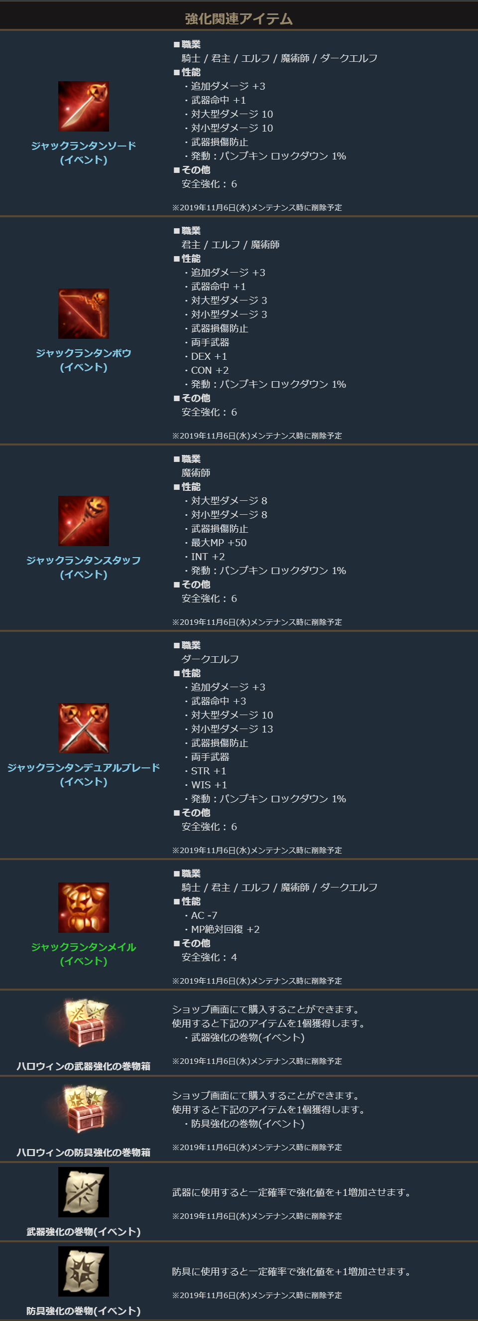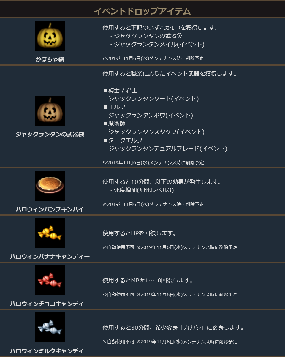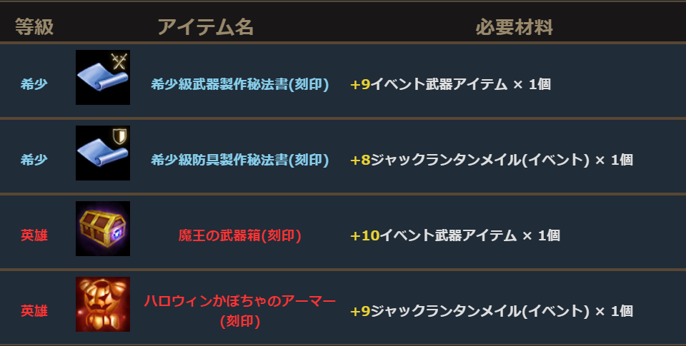 ハロウィン専用ダンジョン「悪霊が住まう地」やアデン大陸の各地にいる「ハロウィン商人」から獲得できるイベント装備アイテムを一定以上強化すると、イベント終了後も使用可能な貴重なアイテムを獲得することができます。