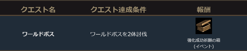 ※イベントクエスト「ワールドボス」は1日1回まで達成することができ、毎日午前5:00に初期化されます。
