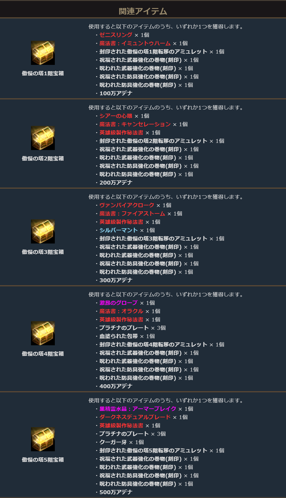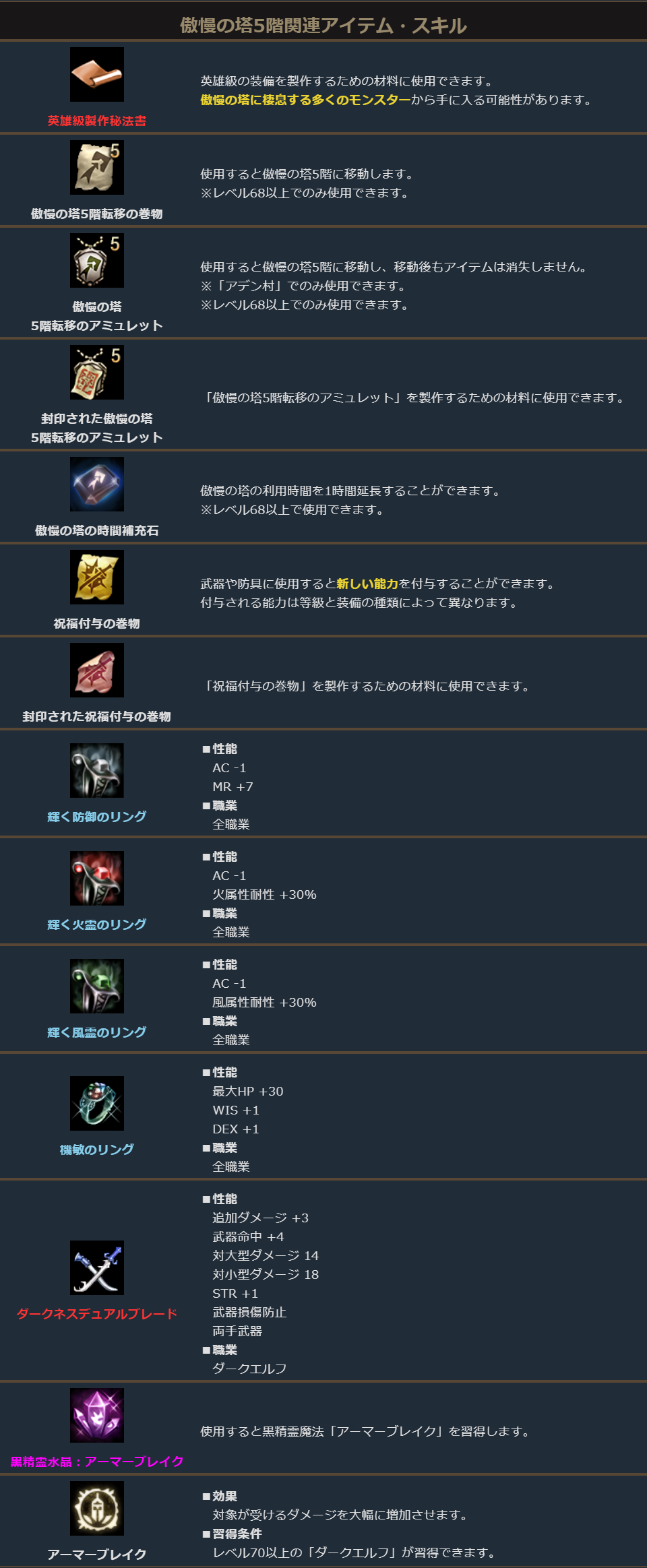 英雄級製作秘法書など貴重なアイテムを獲得できる「傲慢の塔」の新階層"5階"が解禁されましたのでお知らせいたします。