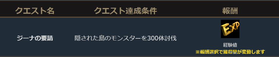※イベントクエスト「ジーナの要請」は1日1回まで達成することができ、毎日午前5:00に初期化されます。