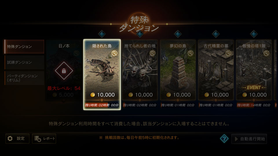 ※特殊ダンジョンの入場制限は毎日午前5:00に初期化されます。