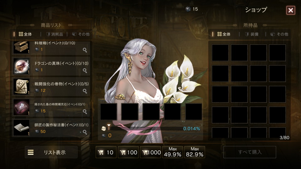 イベント商人では、特殊ダンジョンで獲得した「火薬(イベント)」と色々なアイテムと交換することができます。