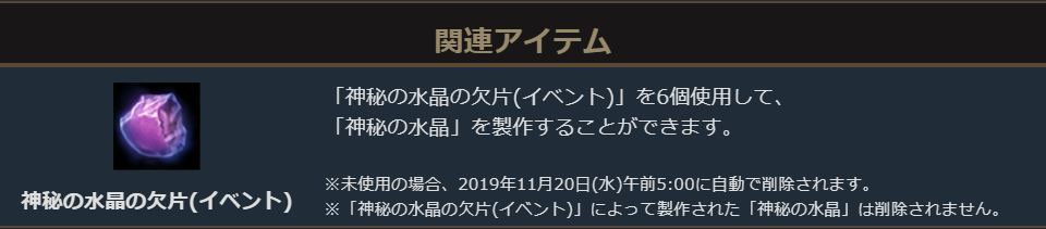 2019年11月13日(水)メンテナンス後~2019年11月20日(水)メンテナンス開始前まで(予定)