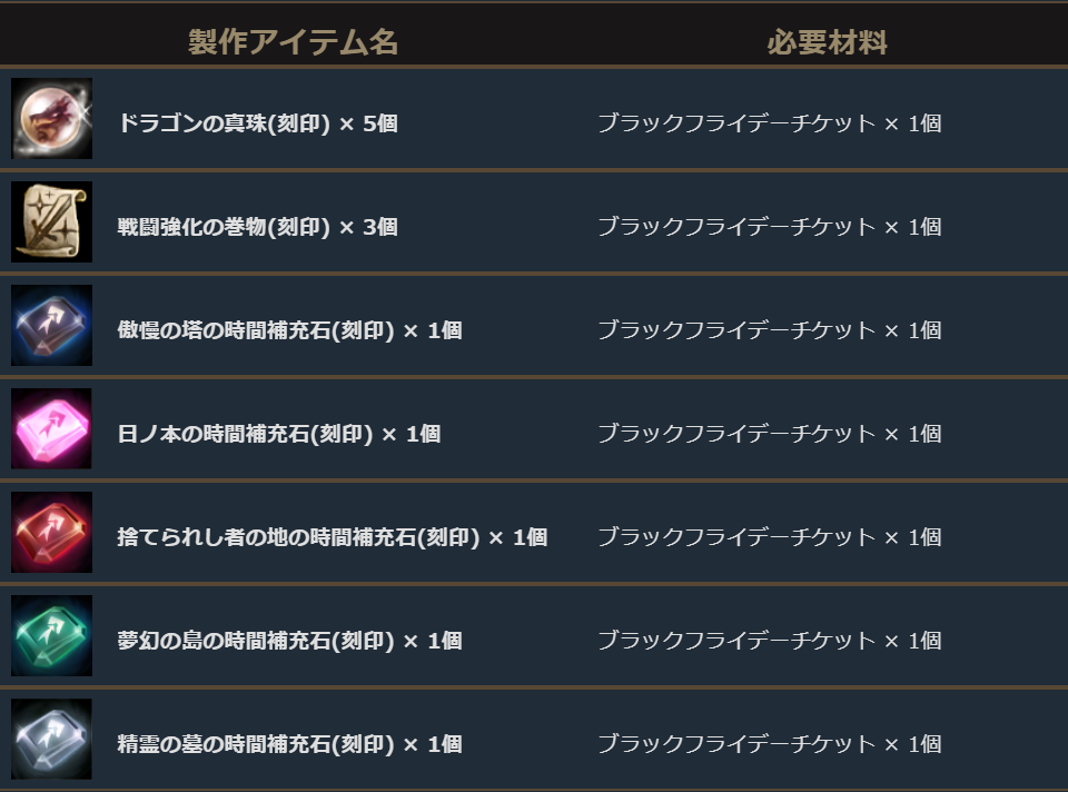 期間中、「ブラックフライデーチケット」を使用してサーバー数量限定の製作を行うことができます。