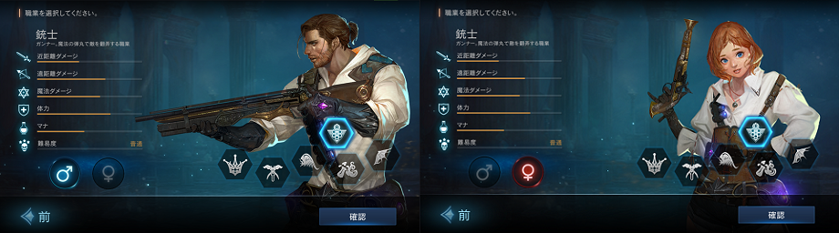 既存サーバーは銃士のみキャラクターの事前作成ができ、それ以外の職業であればすぐにプレイいただくことができます。