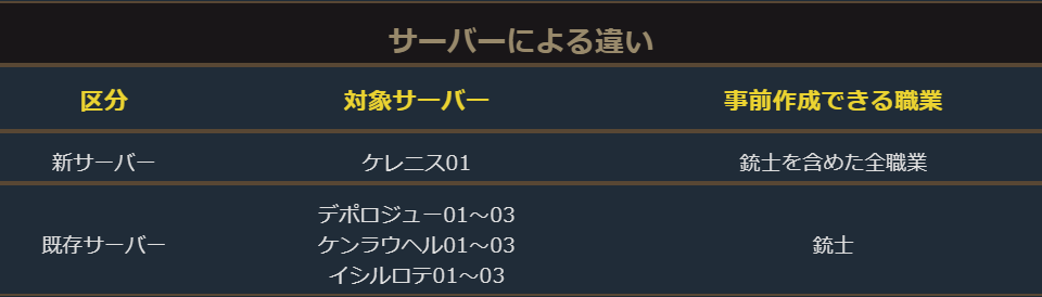 新サーバーは全職業のキャラクターの事前作成ができ、サーバーオープン時にプレイが可能となります。