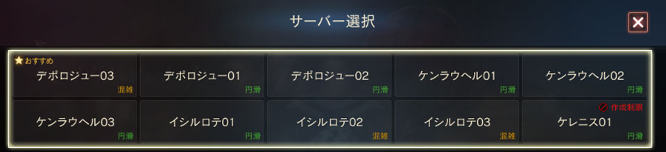 必ずプレイするサーバーを選択してから、キャラクターの作成を行いましょう。