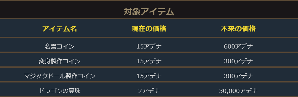 つきましては、本来の購入に必要なアデナを回収いたします。