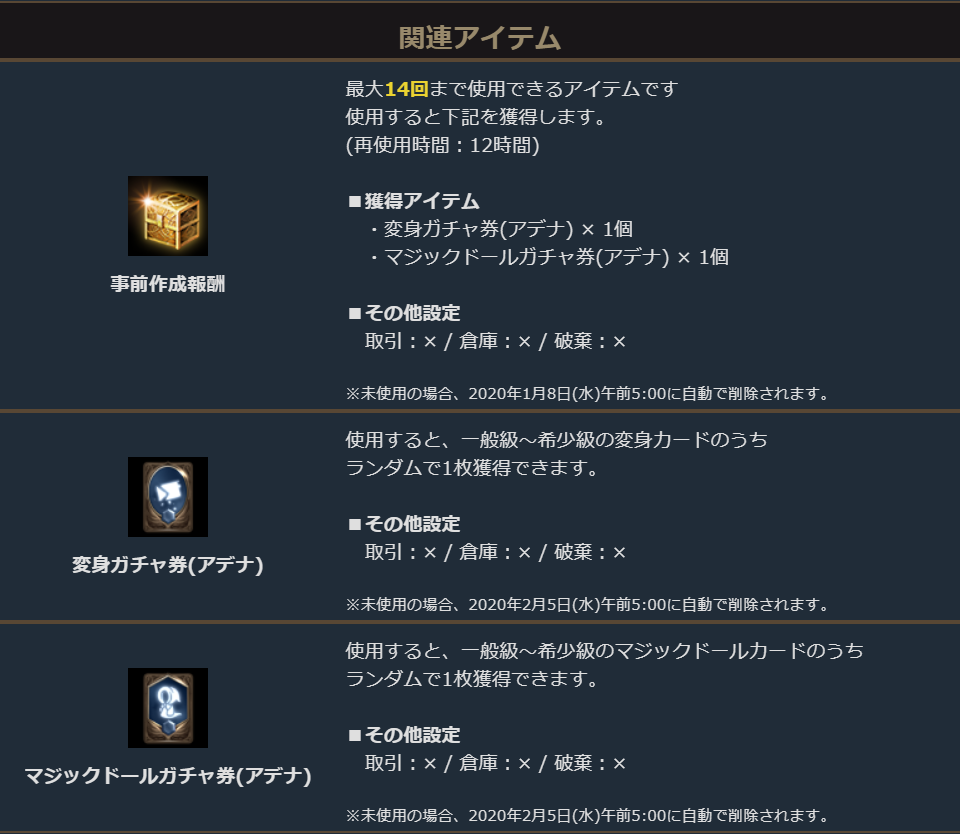 アイテムの配布は2019年12月31日(火)午前4:30まで(予定)となっておりますのでご注意ください。