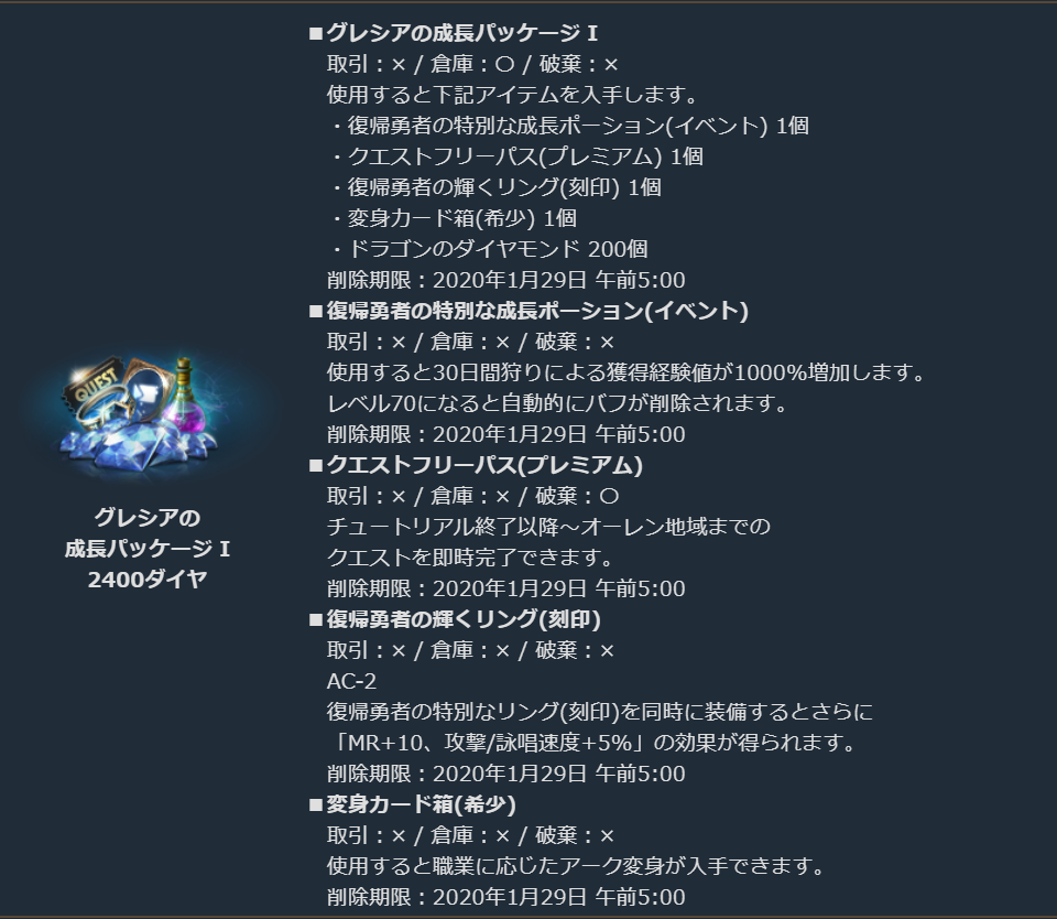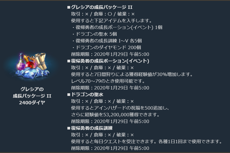 経験値の獲得を重視した、さらなる高みを目指す冒険者を強力にサポートするパッケージです。