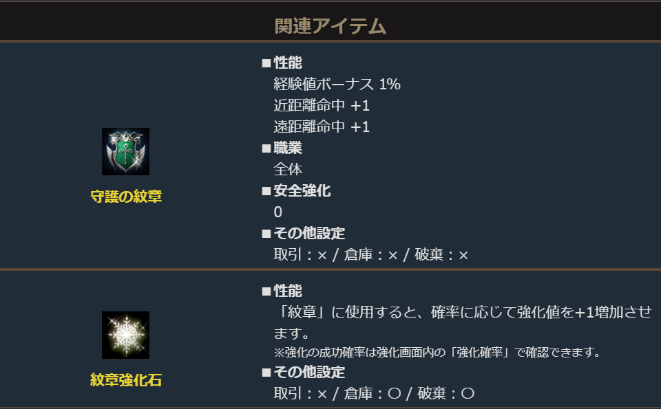 ※「守護の紋章」は付属する「紋章強化石」でのみ強化することができます。