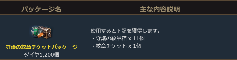 「守護の紋章チケットパッケージ」を購入すると「紋章チケット」を獲得します。