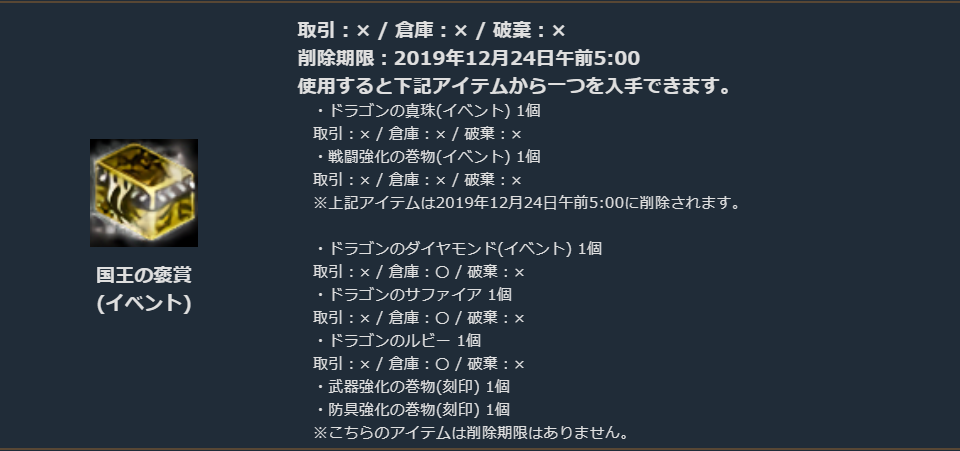 ※一部アイテムは未使用の場合、一定期間が経過すると自動で削除されます。詳しくは各アイテムの詳細をご確認ください。