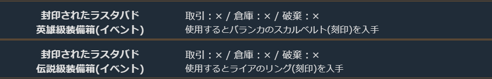箱を開封すると特定のラスタバド関連の貴重な装備が入手できます。