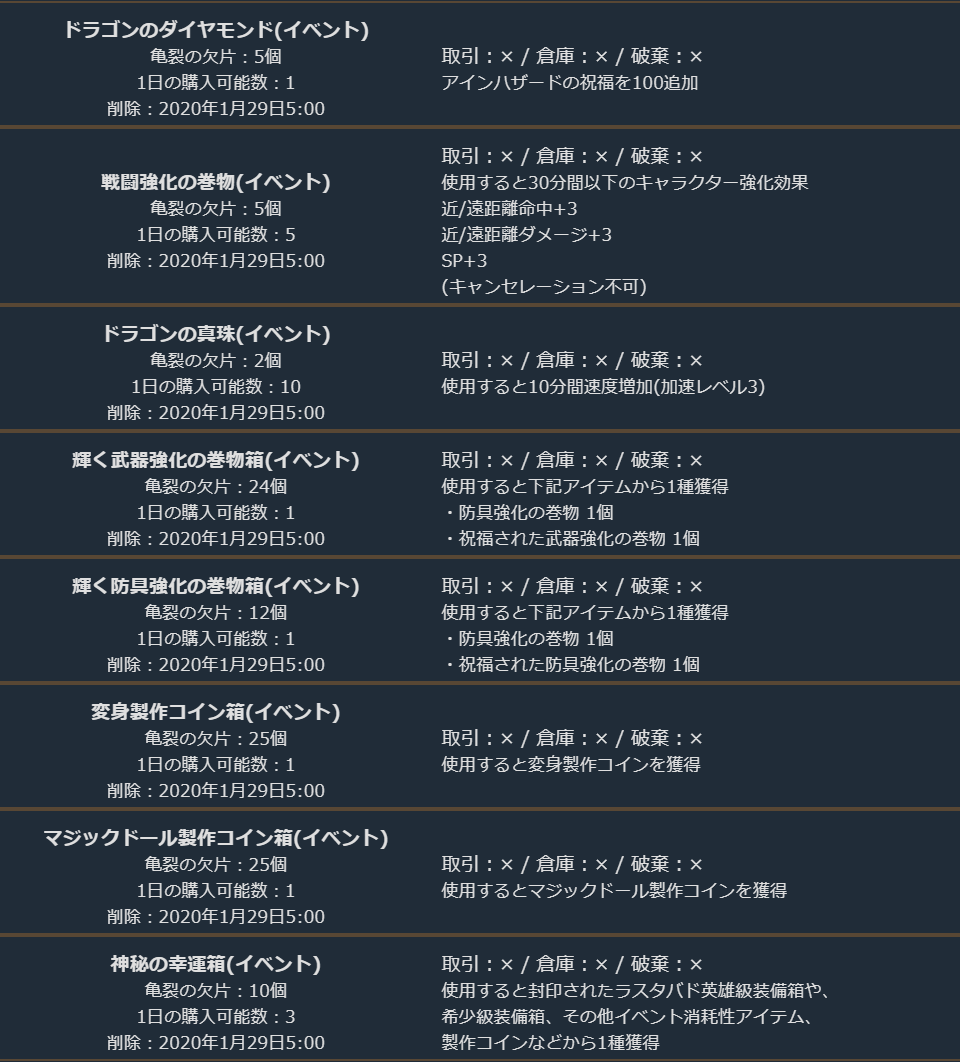2020年1月22日定期メンテナンス後~2020年1月29日定期メンテナンス開始