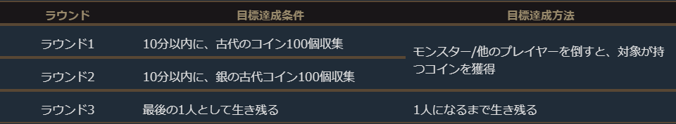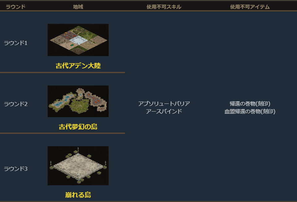 各ラウンドの目標達成後は「古代アデン大陸」、「古代夢幻の島」にいないと、次のラウンドに移動できません。