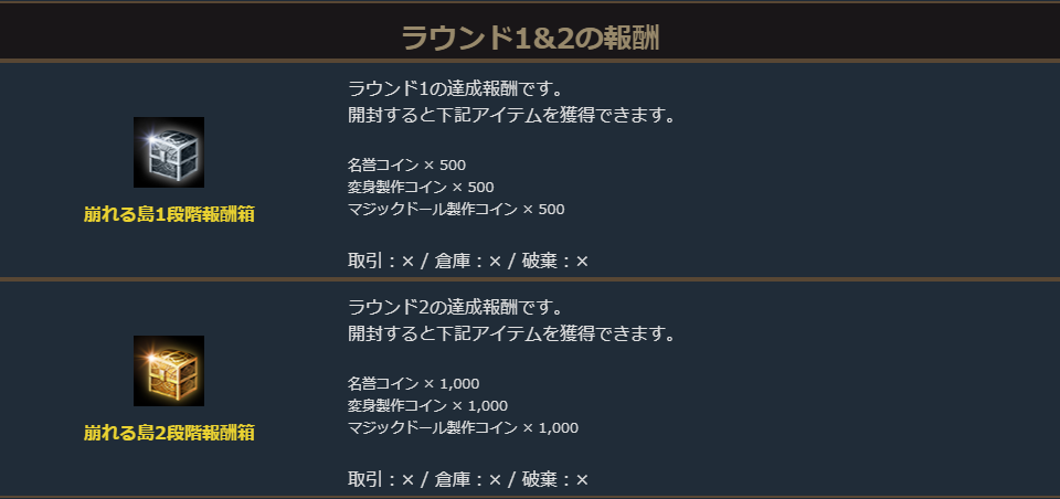 ラウンド3では「崩れる島」の最終生存ランキングによって、以下の報酬を獲得できます。