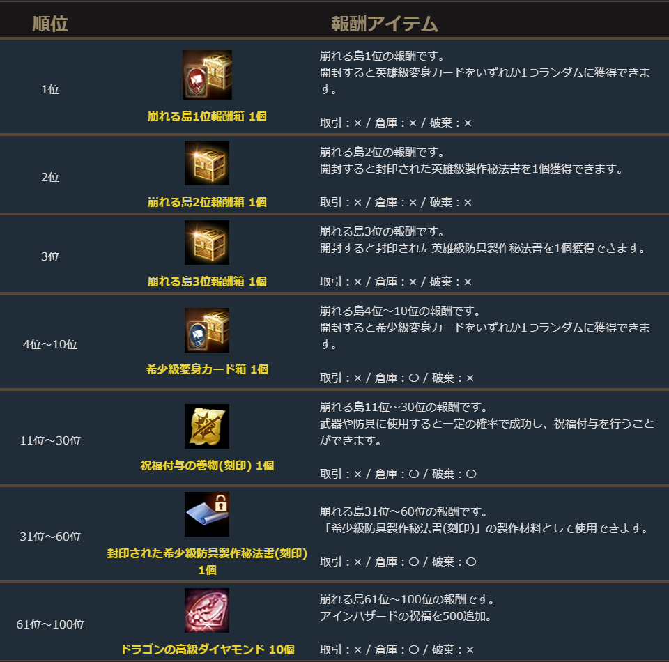 ・「崩れる島」の追加を記念したイベントを開始しました。