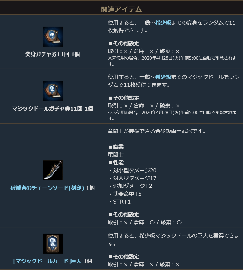 キャンペーン期間中に新職業「竜闘士」を作成された冒険者様に対してプレゼントをご用意させていただきました。