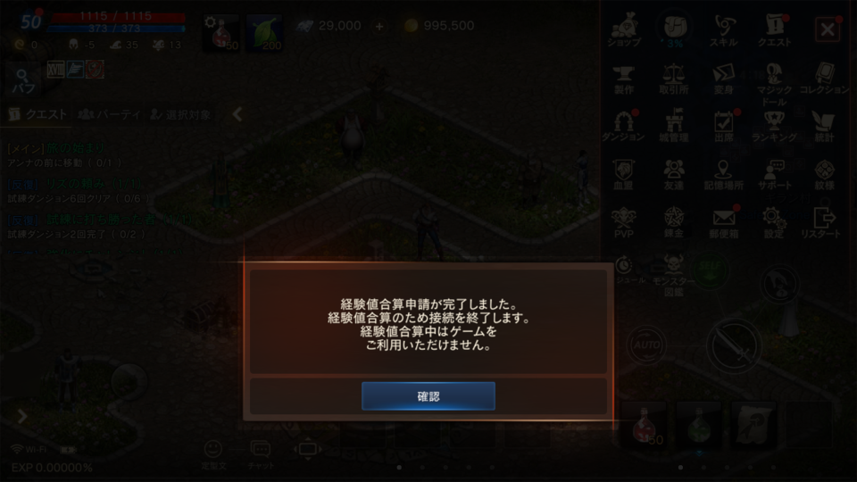 ※経験値合算完了後、ゲームに接続し経験値を獲得した場合、Lv60までキャラクター削除ができなくなります。ご注意ください。