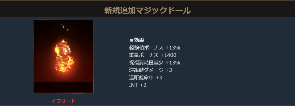 英雄級のマジックドール:イフリート追加に伴い、マジックドールのコレクションも追加いたしました。