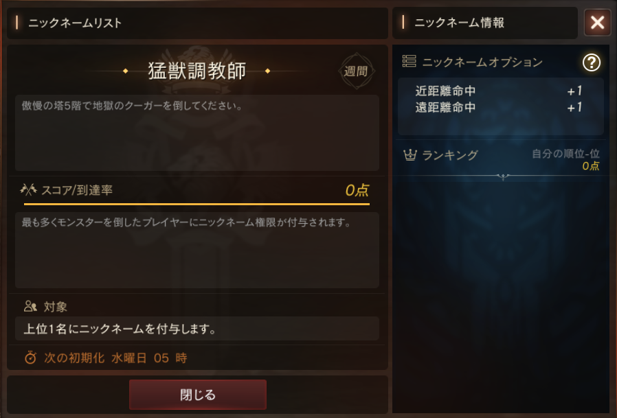 ニックネームごとに設定された条件で、ランキング集計初期化時点で1位を達成したキャラクターのみ表示させることが可能です。