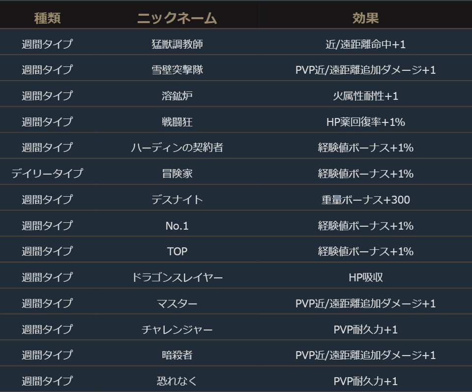 ニックネームを表示させることにより、様々なバフ効果を得えることができます。