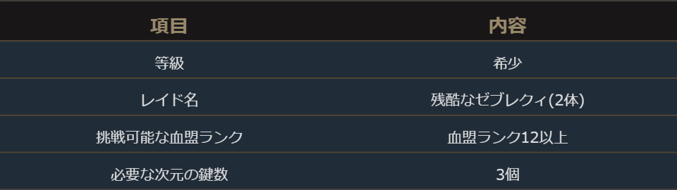 血盟レイドに希少級「ゼブレクイ」を追加しました。