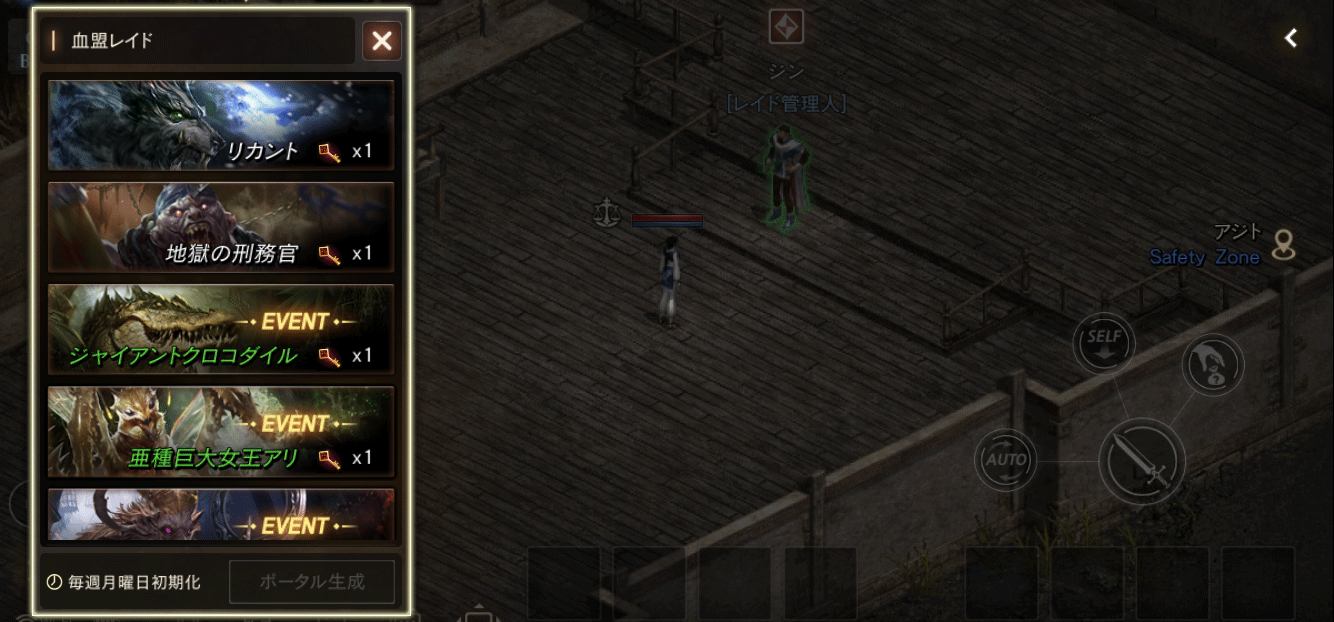 いきなり高難易度の血盟レイドに挑戦して戦力不足により失敗すると、ダンジョンの制限時間を迎えてポータルが消えるまで別の血盟レイドに挑戦することが出来ません。