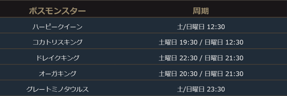 イベント期間中は、ワールドボスクリア時の確定報酬の獲得量が2倍になります。