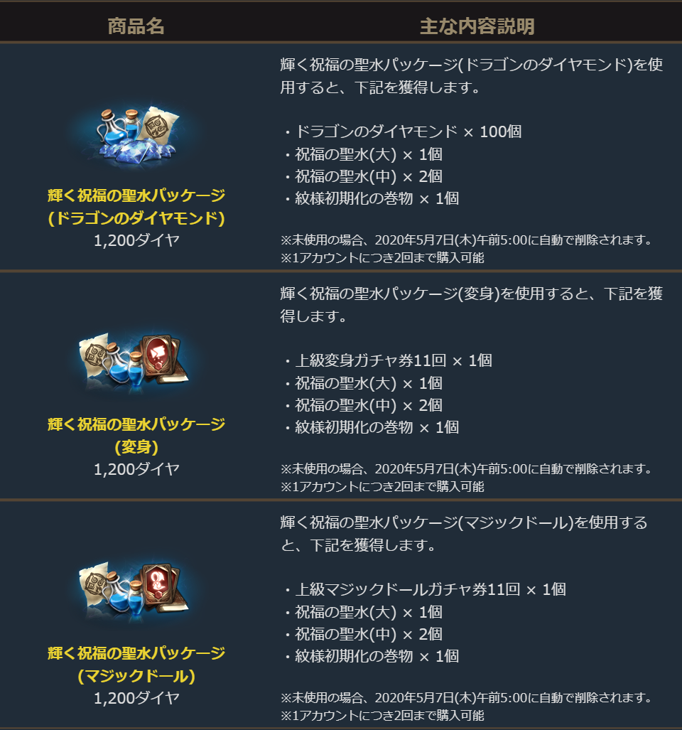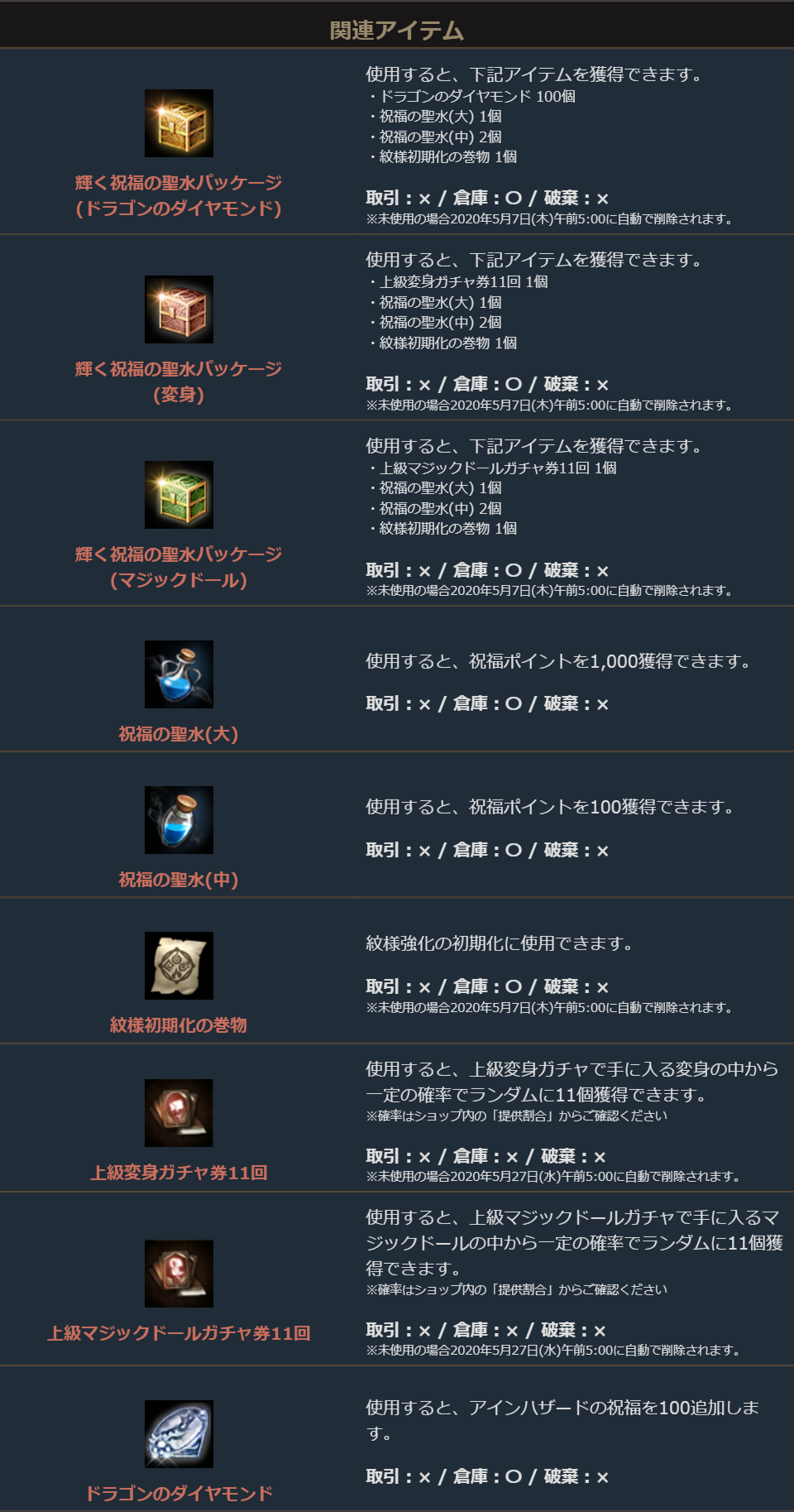 ※一部アイテムは未使用の場合、一定期間が経過すると自動で削除されます。詳しくは各アイテムの詳細をご確認ください。