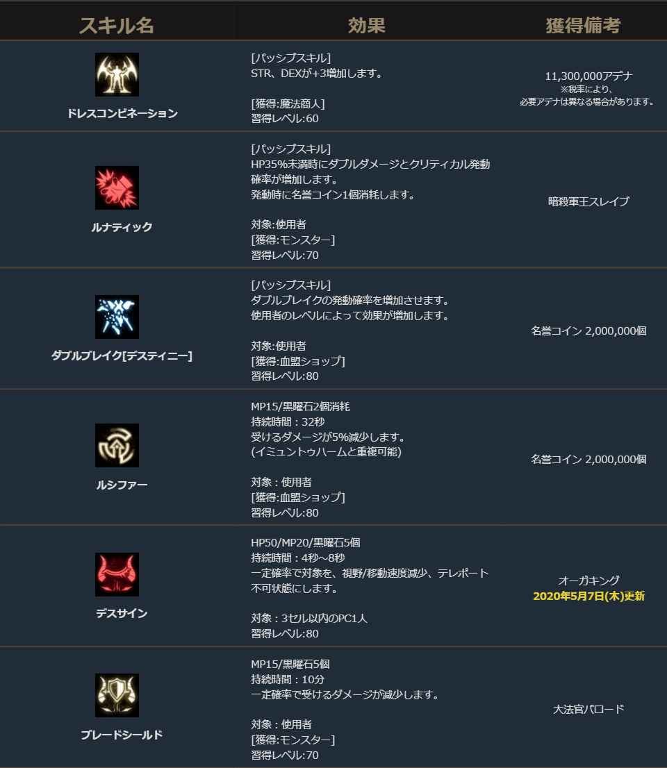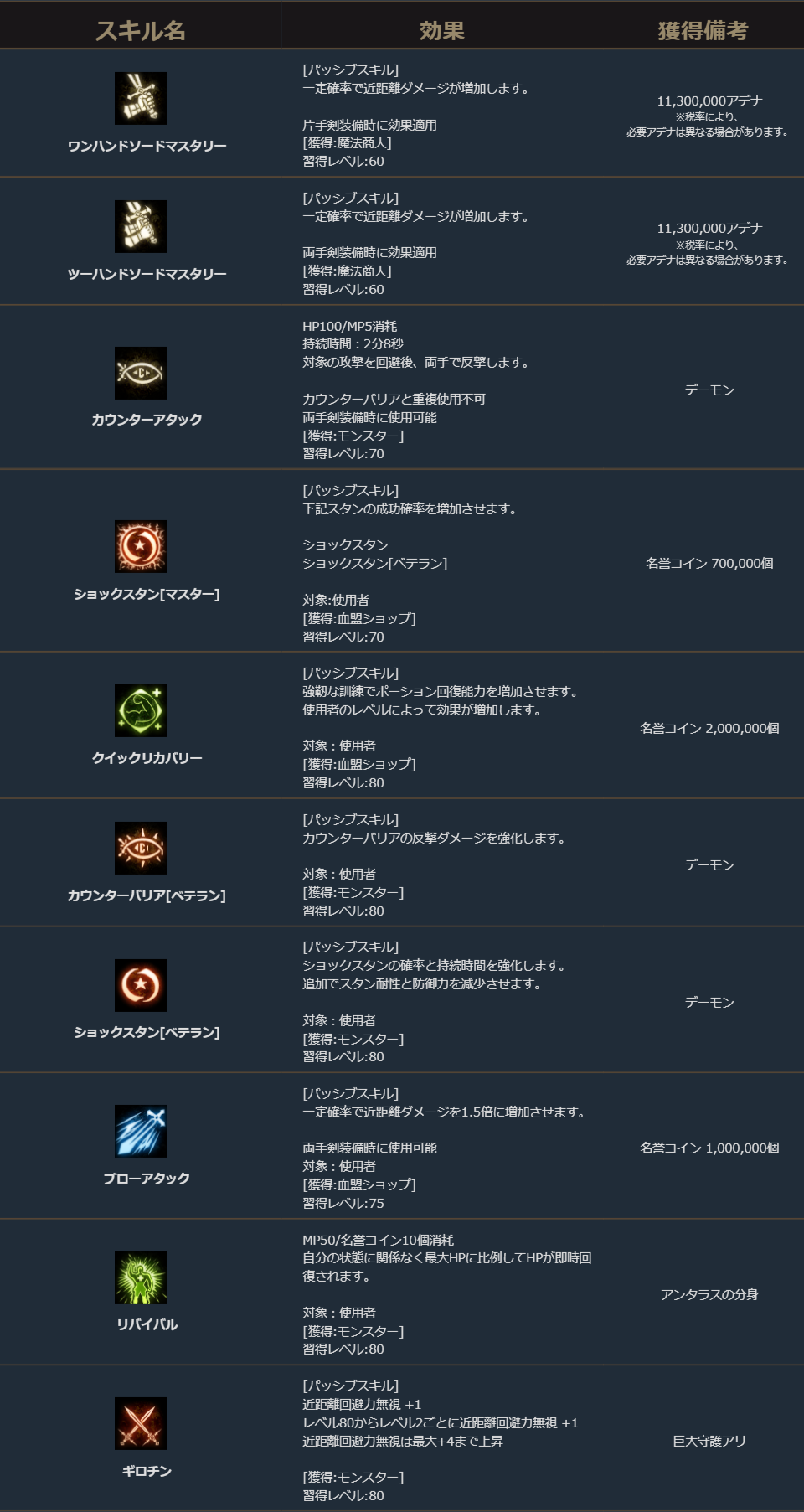 ・バーニングスピリット、シャドウショック、シャドウファングをパッシブスキルへ変更しました。