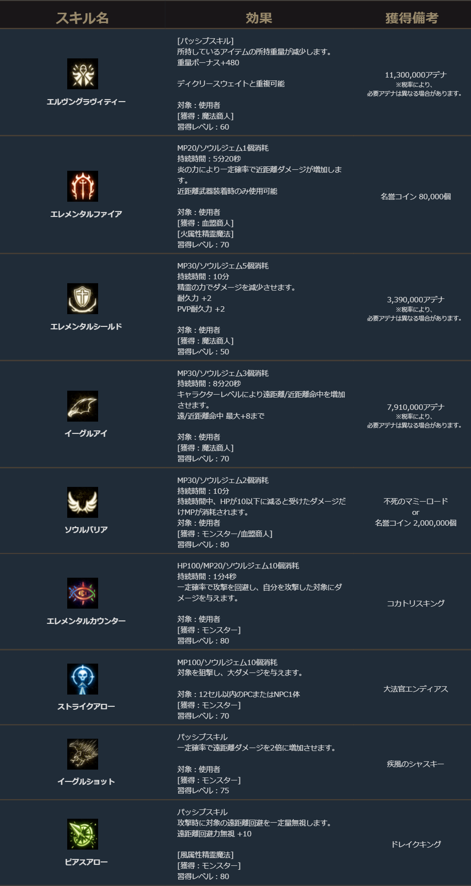 ・エルヴンウィダーの精霊魔法レベルをレベル3に変更しました。