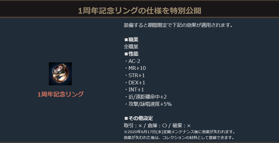 「TJの1周年プレゼント」を使用すると、待望の1周年記念リングの製作材料が手に入るほか、サプライズなアイテムもついてきます!