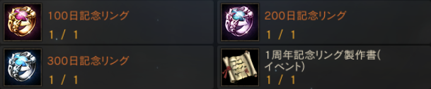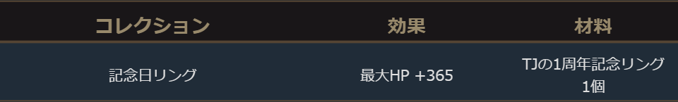 ▼「TJの1周年プレゼント」から獲得できる「TJの1周年記念リング」の製作材料