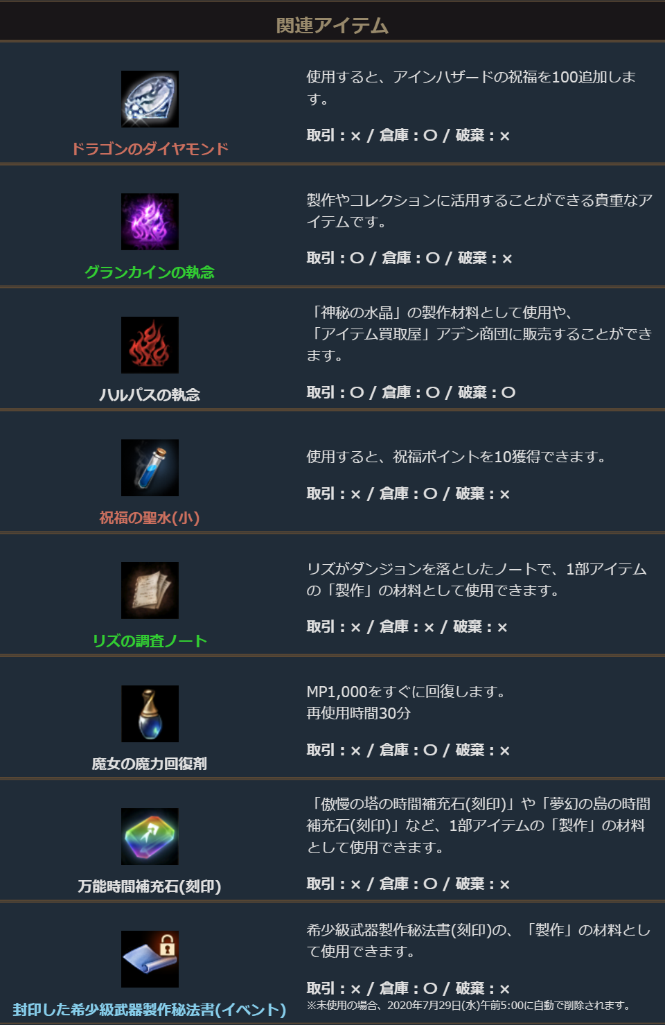最後となる7回目に使用すると、「封印された希少級武器製作秘法書(イベント)」も消耗品とあわせて獲得できます。