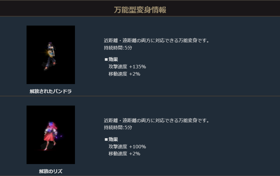 攻撃速度が上昇する変身や、武器の着用が不可能な面白変身などランダムに様々なモンスターへ変身できます。