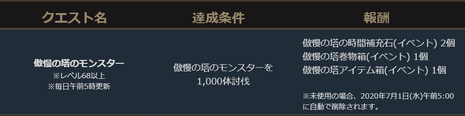 ・「傲慢の塔のモンスター」のクエストが追加されます。