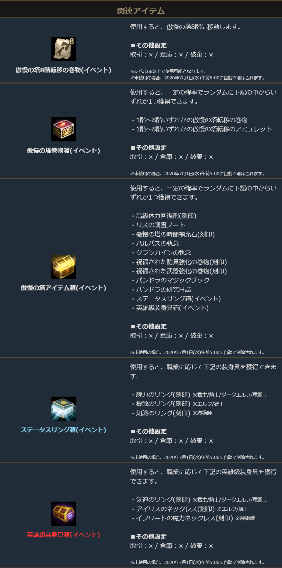 ※キャンペーンで配布した「傲慢の塔8階転移の巻物(イベント)」は2020年7月1日定期メンテナンス時に削除いたします。