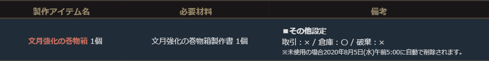 ※製作可能期間:2020年8月5日(水)定期メンテナンス時まで