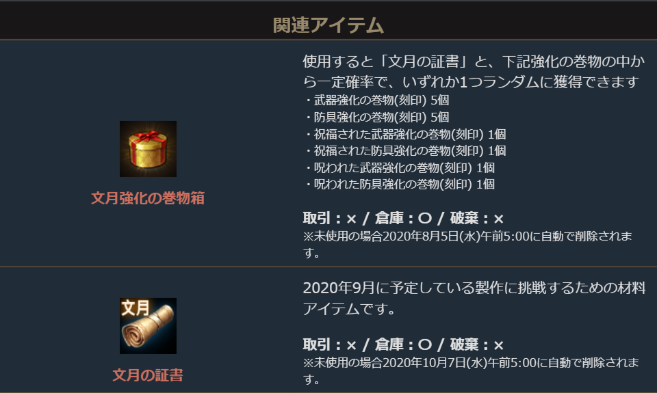 「文月の証書」は、現状使用することはできませんが、9月に実装予定している「製作」に挑戦することができる材料アイテムです。