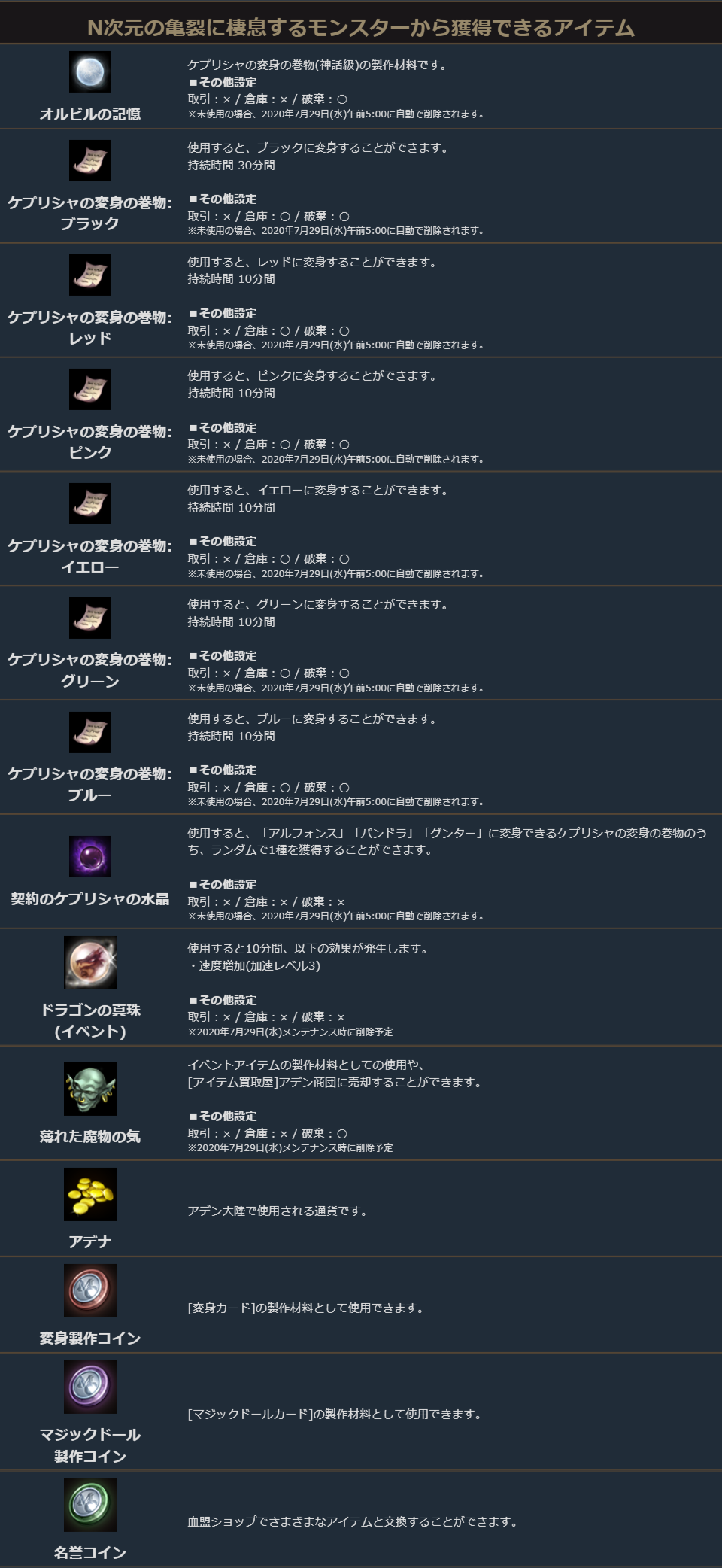 ケプリシャの変身の巻物(神話級)作成のために必要な「オルビルの記憶」は、特殊ダンジョン「N次元の亀裂」のモンスターからドロップします。