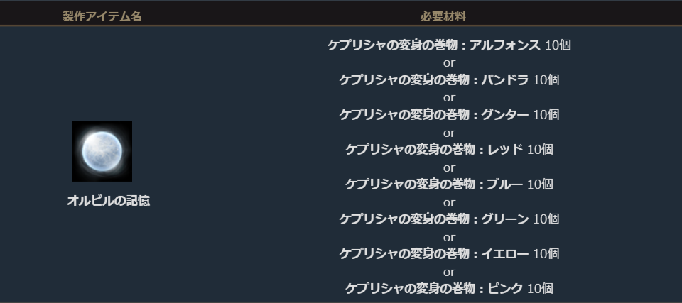 「契約のケプリシャの水晶」を使用すると、「アルフォンス」「パンドラ」「グンター」に変身できる各種ケプリシャの変身の巻物を獲得することができます。