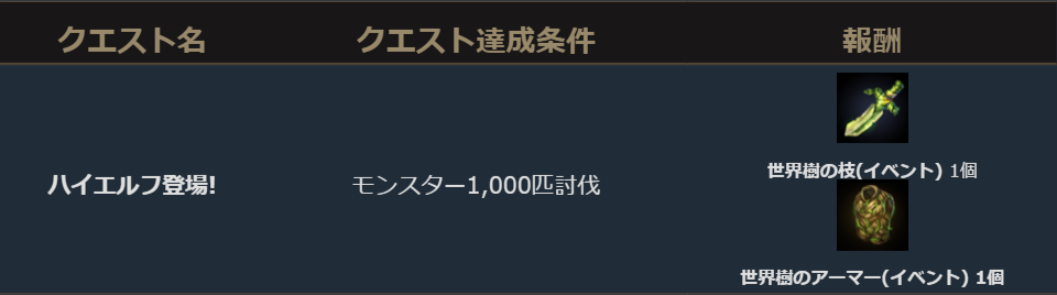 ※イベントクエストは1日1回まで達成することができ、毎日午前5:00に初期化されます。
