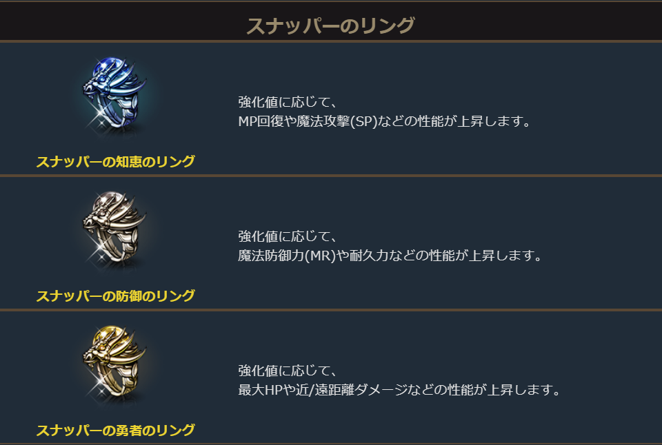 「スナッパーのリング」は「スナッパーのリングの強化の巻物」でのみ強化することができます。